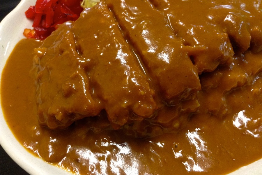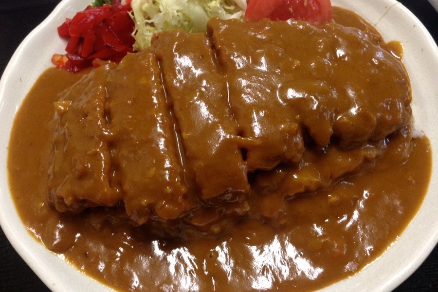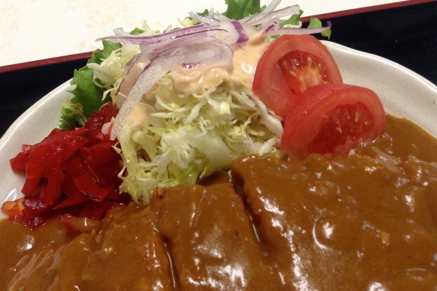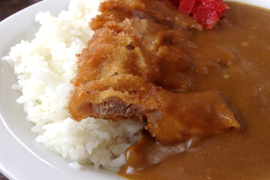 ところがカツカレーのカツがやたら薄いですねえ 肉の厚さだけで言ったら銀作亭や城東食堂カツカレーの半分くらいですよ もしかすると「大盛り」だと違うのかもしれないけど、それは確認できませんでした 隣のテーブルあたりで誰か食べてたら見えるんですけどね