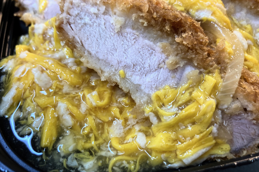 これはカツ丼なんですが、にしちゃ色がヘンでしょ?